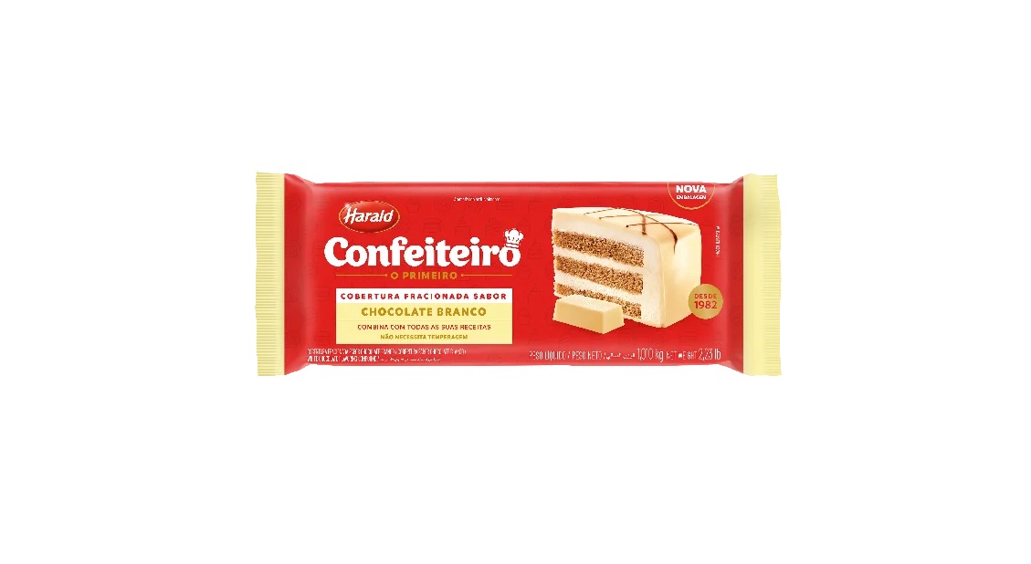A Cobertura em Barra Sabor Chocolate Branco Harald Confeiteiro 1,01kg é ideal para confeiteiros, padarias e amantes da confeitaria que buscam qualidade e praticidade. Produzida pela Harald, referência em chocolates e coberturas no Brasil, essa barra oferece sabor suave e adocicado característico do chocolate branco, com textura cremosa e fácil de manusear. Por ser da linha Confeiteiro, não necessita de temperagem, garantindo brilho, crocância e ótimo rendimento em coberturas, banhos, recheios e decorações.