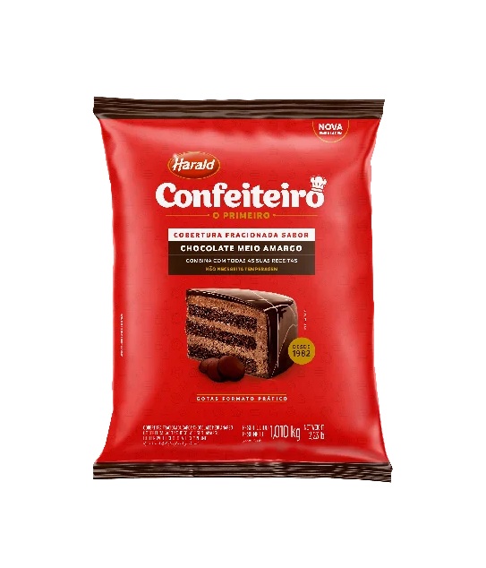 A Cobertura em Gotas Sabor Chocolate Meio Amargo Harald Confeiteiro 1,01kg é ideal para quem busca sabor intenso aliado à praticidade. Produzida pela Harald, referência em chocolates e coberturas no Brasil, essa opção possui equilíbrio perfeito entre doçura e amargor, com derretimento uniforme e textura cremosa. No formato de gotas, facilita o uso, garantindo praticidade no derretimento e aplicação. Não exige temperagem, mantendo brilho e crocância após a aplicação, sendo perfeita para coberturas, recheios, banhos e decorações em confeitaria e panificação.