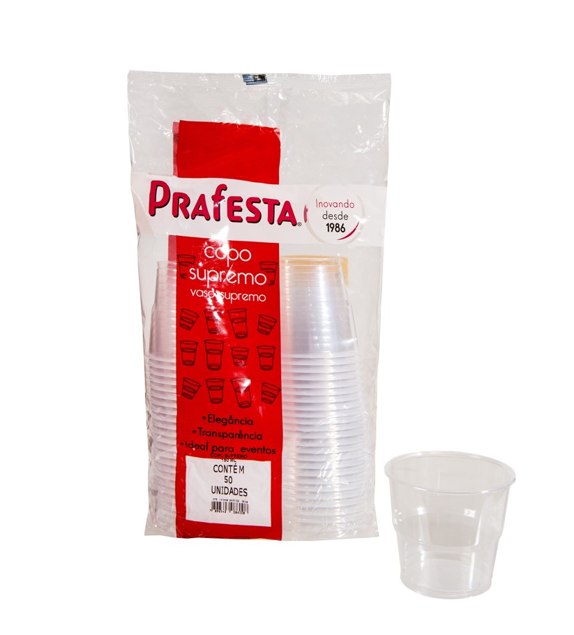 O Copo Supremo Prafesta 150ml é um copo descartável resistente e de excelente acabamento, ideal para servir água, sucos, refrigerantes, cafés longos e pequenas porções de sobremesas. Produzido em PS cristal (poliestireno rígido), possui alta transparência, valorizando a apresentação da bebida e transmitindo higiene e qualidade ao consumidor.