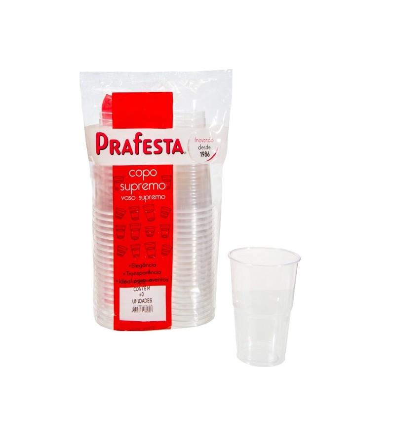 O Copo Supremo Prafesta 300ml é um copo descartável resistente e de excelente acabamento, ideal para servir água, sucos, refrigerantes, cafés longos e pequenas porções de sobremesas. Produzido em PS cristal (poliestireno rígido), possui alta transparência, valorizando a apresentação da bebida e transmitindo higiene e qualidade ao consumidor.