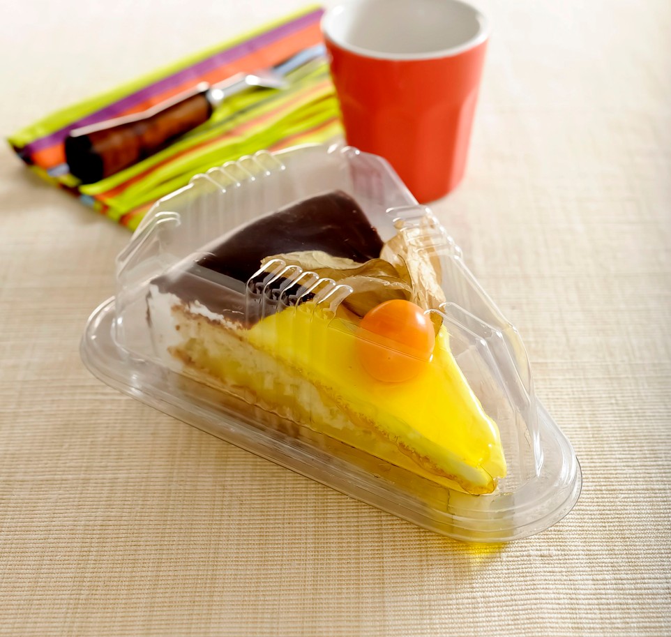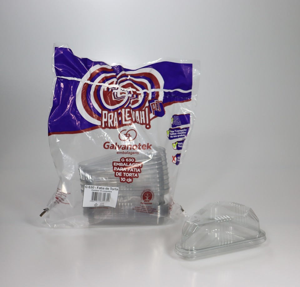 A Embalagem Galvanotek G630 SF é ideal para fatia de torta, bolo ou sobremesa individual. Produzida em PET cristal de alta transparência, valoriza a apresentação do produto, permitindo ótima visualização e garantindo proteção contra contaminações externas.