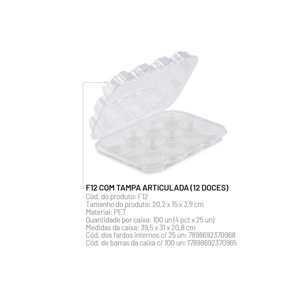 Embalagem C/ Tampa Articulada P/ 12 Doces Fibraform F12 C/ 25 Unidades