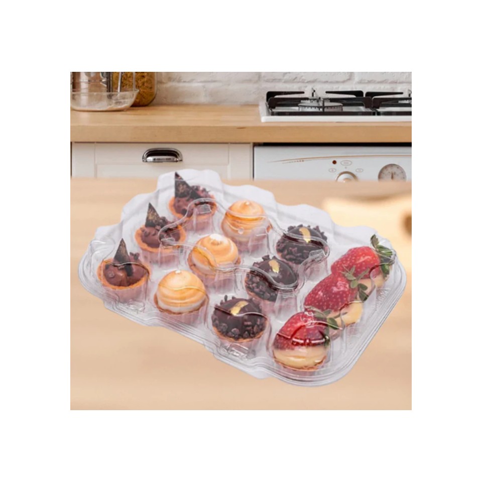 Fabricada em PET cristal de alta transparência, proporciona excelente visibilidade do produto, valorizando a apresentação e facilitando a exposição em vitrines, padarias e confeitarias.