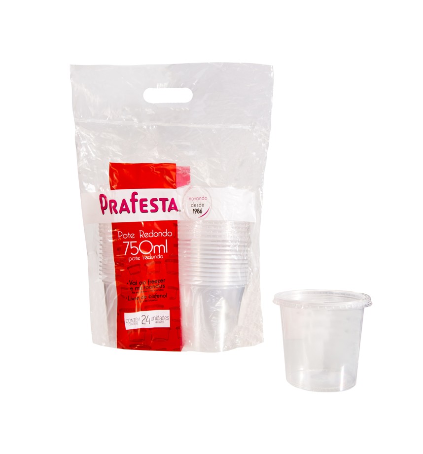 O Pote Redondo Prafesta 750ml é uma embalagem versátil, prática e resistente, ideal para acondicionar açaí, saladas, sobremesas, massas, frutas e refeições médias. Produzido em PET cristal transparente, garante excelente apresentação do alimento, transmitindo qualidade e higiene ao consumidor.