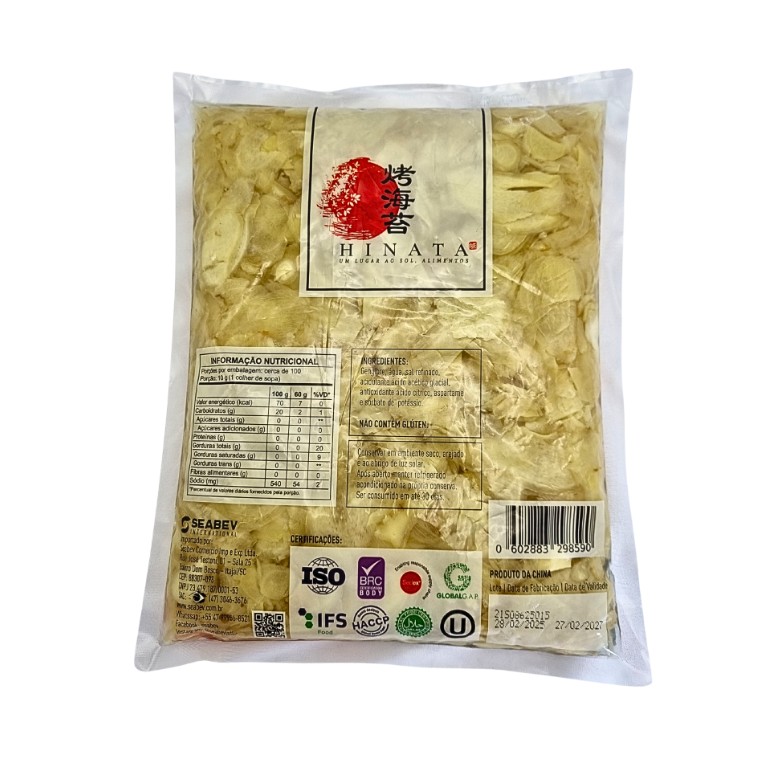 O Gengibre em Conserva Branco Fatiado Hinata 1,01kg é um item essencial da culinária japonesa, conhecido como Gari. Produzido a partir de gengibre selecionado, cortado em fatias finas e conservado em solução especial, apresenta sabor levemente picante, adocicado e refrescante.