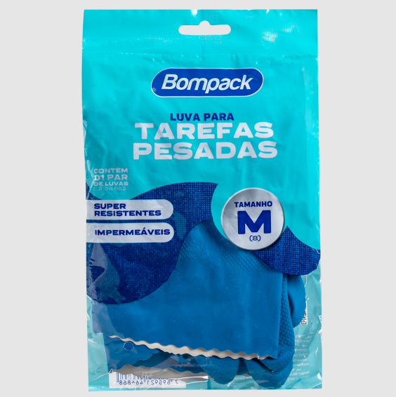 Com tamanho M (Médio), ajusta-se de forma anatômica às mãos, oferecendo firmeza, flexibilidade e proteção contra detergentes, água e produtos de limpeza. A marca Bompack, referência em utilidades e embalagens, alia qualidade, praticidade e durabilidade em seus produtos.