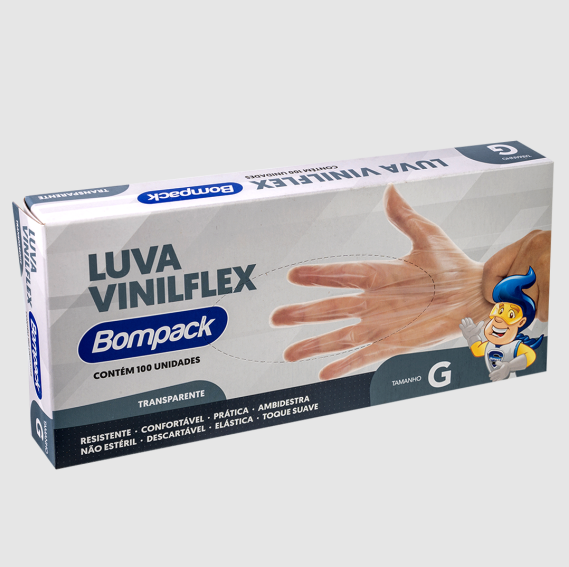 Início HIGIENE E LIMPEZA LUVAS E TOUCAS Luva Viniflex S/ Pó Tamanho G C/ 100 Bompack