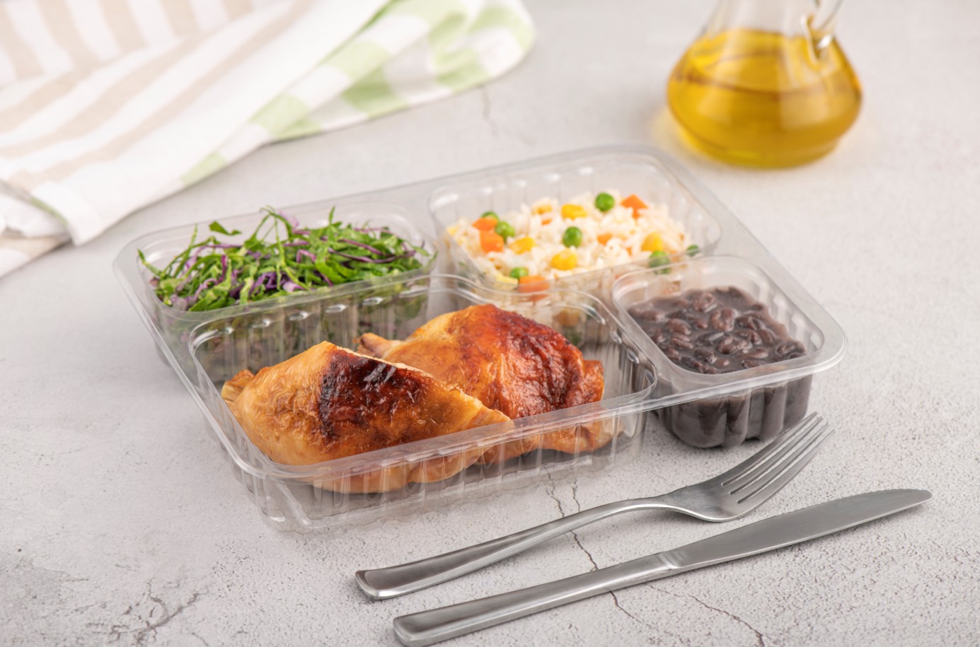 A Marmita Gourmet JF Pack 4 Divisórias é resistente, prática e elegante, desenvolvida para delivery e refeições completas. Produzida em PET cristal, garante vedação segura, ótimo espaço interno e nichos firmes que mantêm os alimentos separados e bem apresentados.